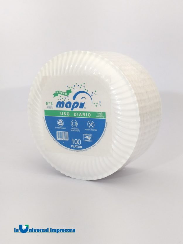 PLATO REDONDO No. 3 PL-ECO-15 USO DIARIO Plato de papel para uso diario. En presentación de 15cm. Se vende por cajas de 1,000 unidades – 10 paquetes de 100 platos c/u Precio $