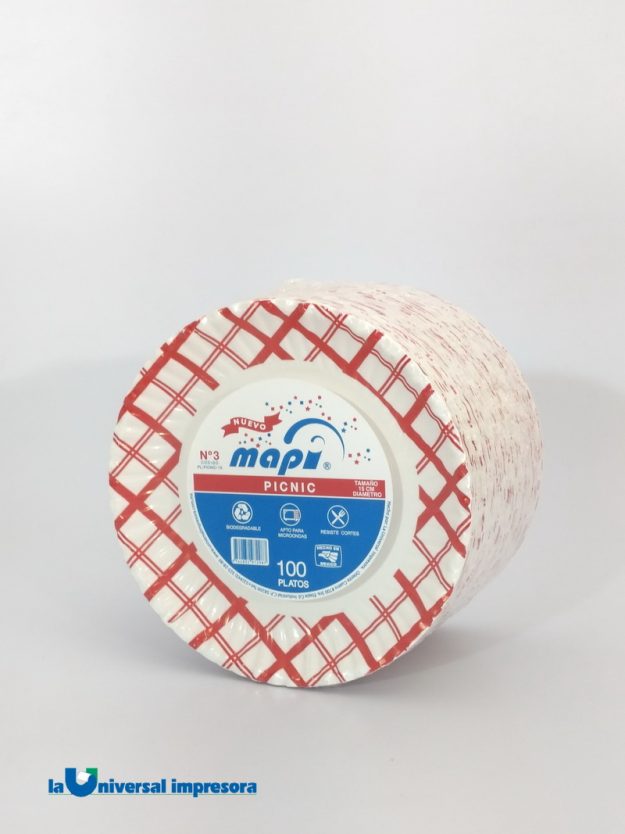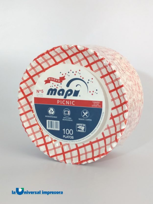 PLATO REDONDO No. 5 TC-1005 PICNIC Plato de papel en diseño especial para picnic En presentación de 23cm. Se vende por cajas de 1,000 unidades – 10 paquetes de 100 platos c/u Precio $